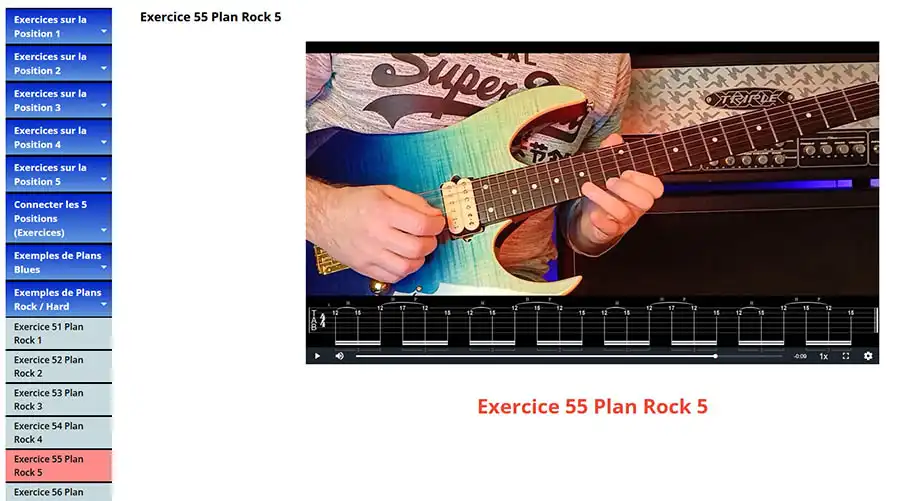 • 12 exercices pour apprendre à connecter les 5 positions entre elles de manière plus horizontale et exploiter le manche en entier.