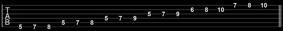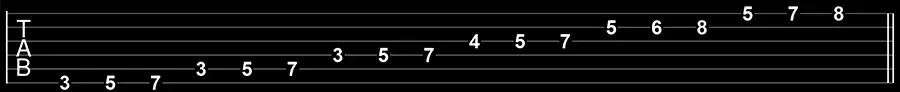 La gamme majeure est composée de 7 notes c’est donc 2 de plus que la gamme pentatonique. Les espaces entre les notes de cette gamme peuvent être de 1ton (2 cases sur le manche) ou 1/2 ton (1 case). Ces espaces entre les notes seront les même quelque soit la tonalité de la gamme.